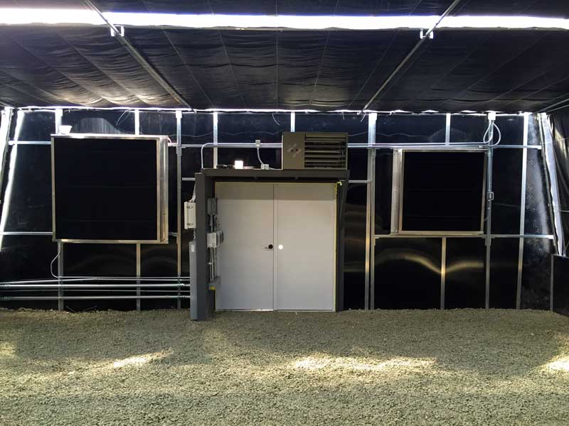 - Inside Front entrance. 36″ and 48″ Exhaust fans with light traps